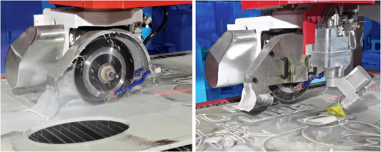 with top of the line Italian CNC control system ESA, is a fully automated dual-use machine, a combination of a 5-axis CNC saw and a 5-axis CNC waterjet, which is gone together constructing the revised concept system for cutting granite, marble, quarts, limestone and the rising new ceramic material.